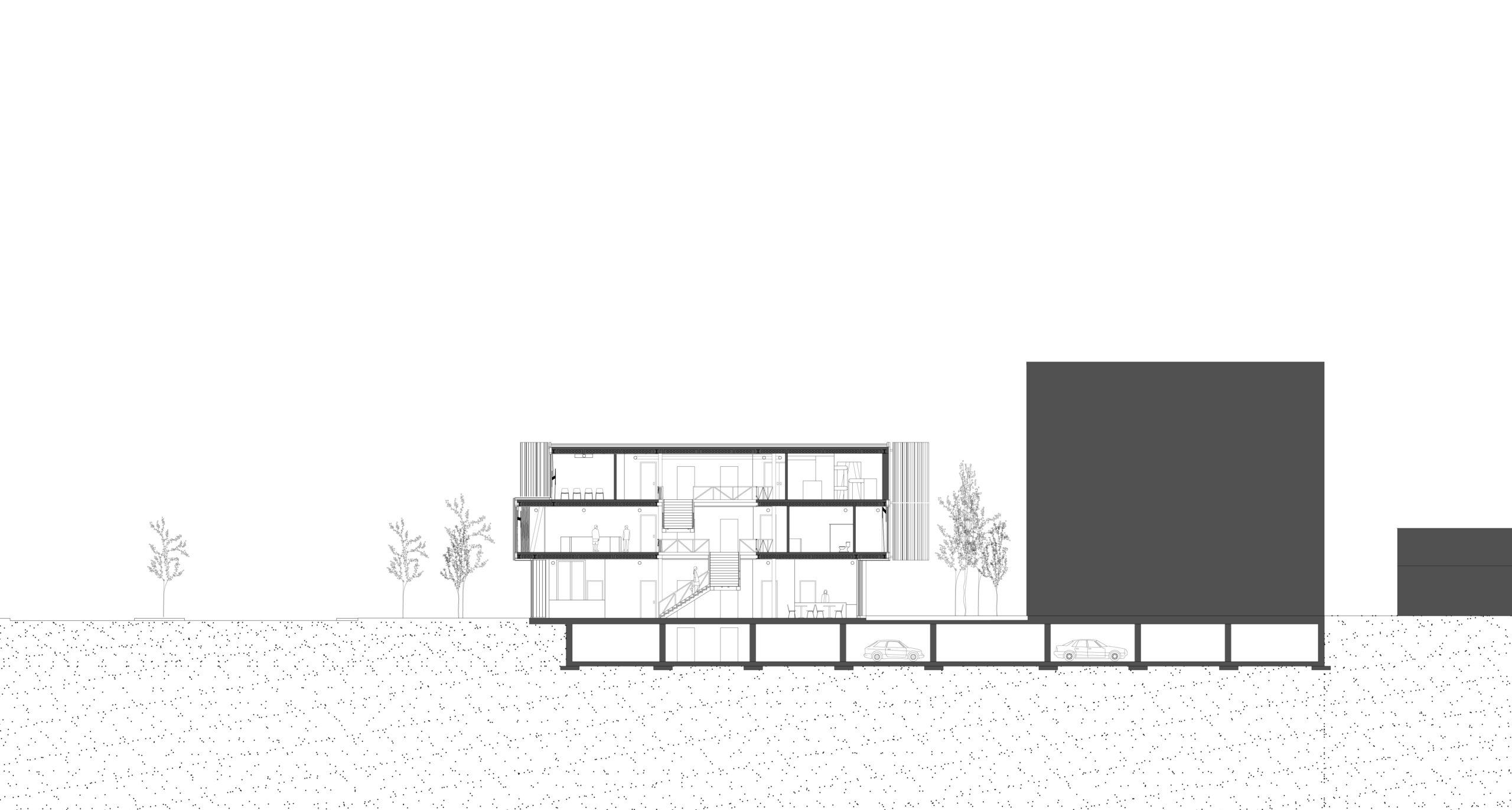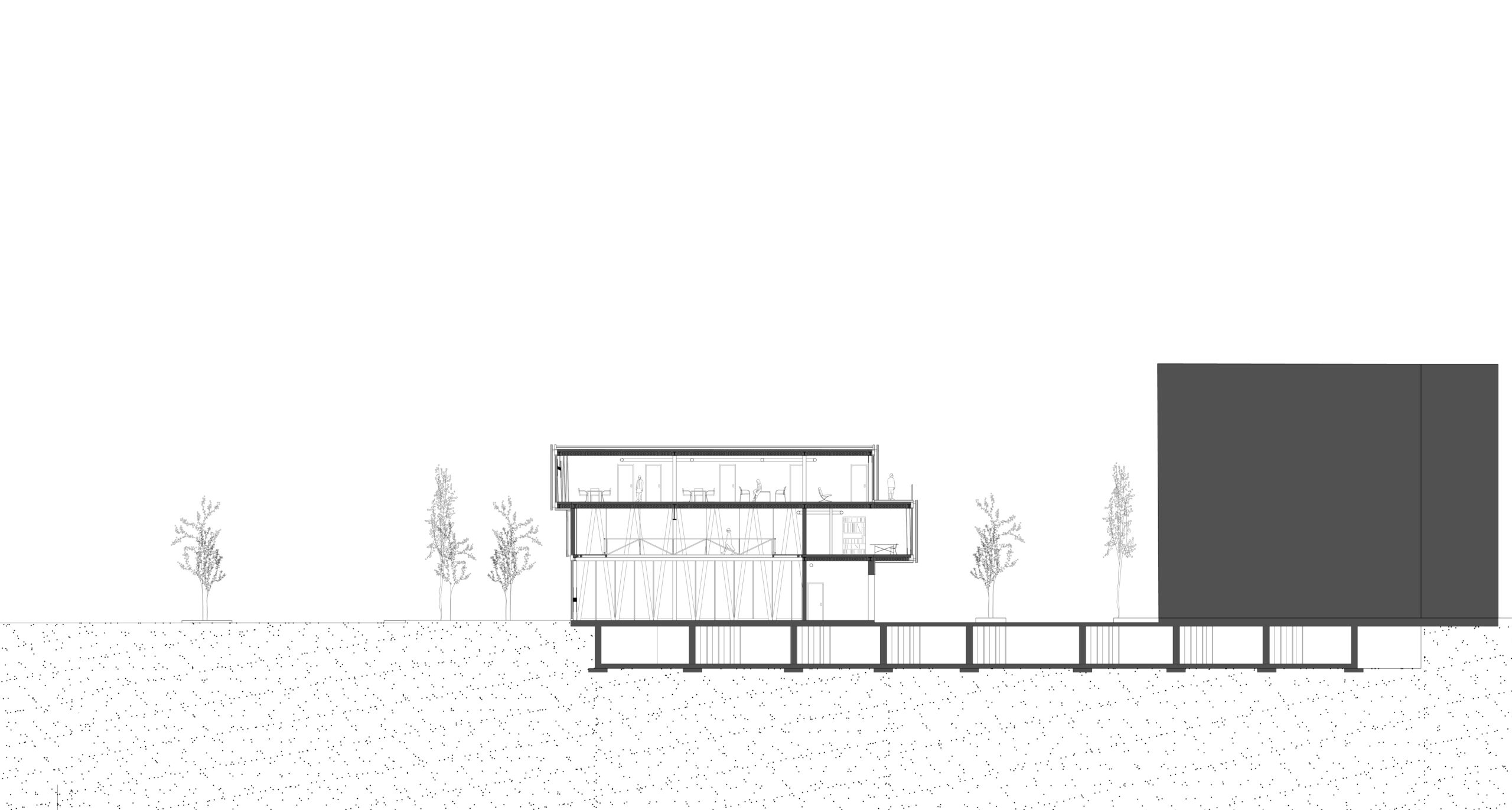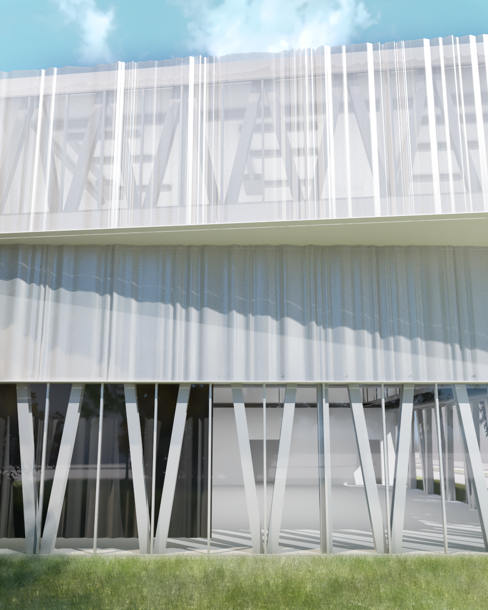 Inspiré directement par son site, ce projet de centre communautaire se développe autour d’une trame structurale en treillis venant créer un premier rythme. Quant au deuxième, il est marqué par une enveloppe ondulée, perforée, qui parcourt le périmètre du bâtiment. Ensemble, un stretto se crée par la superposition décalée des éléments, l’un commence et l’autre se termine juste.