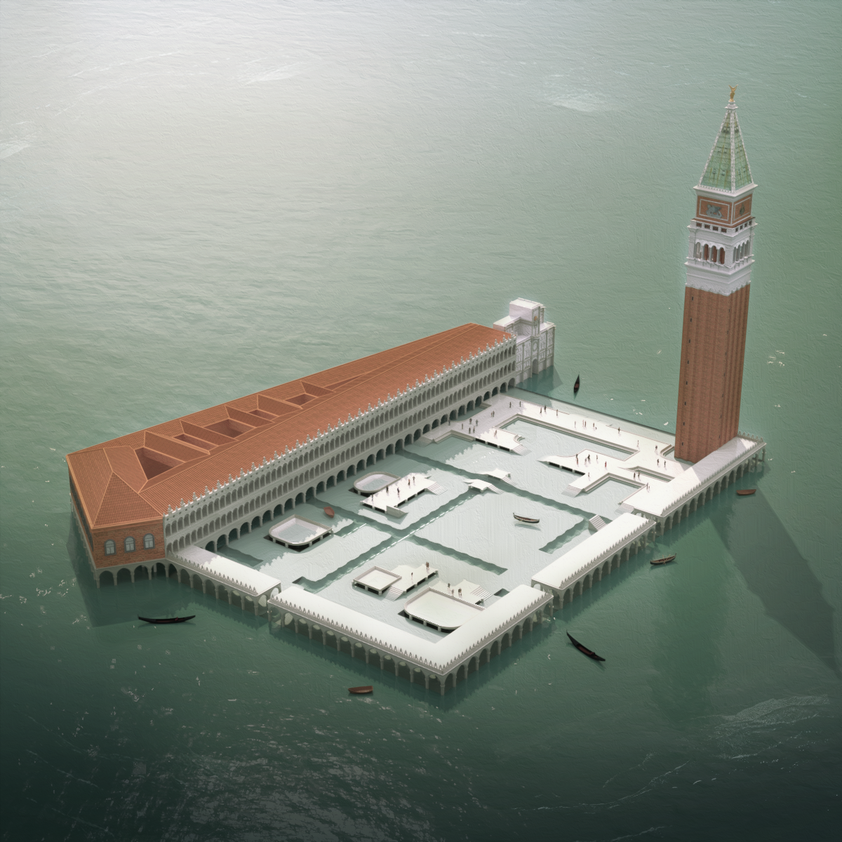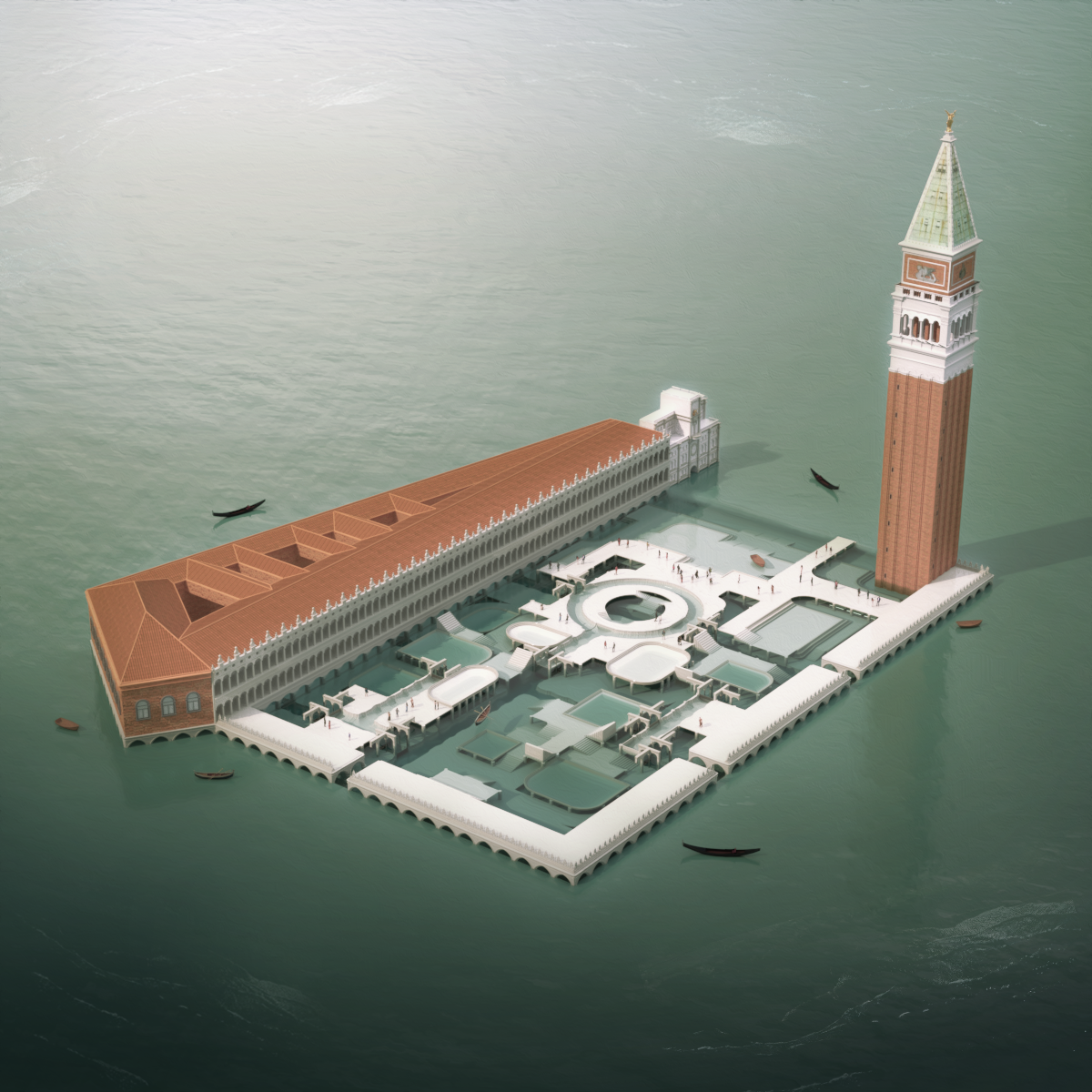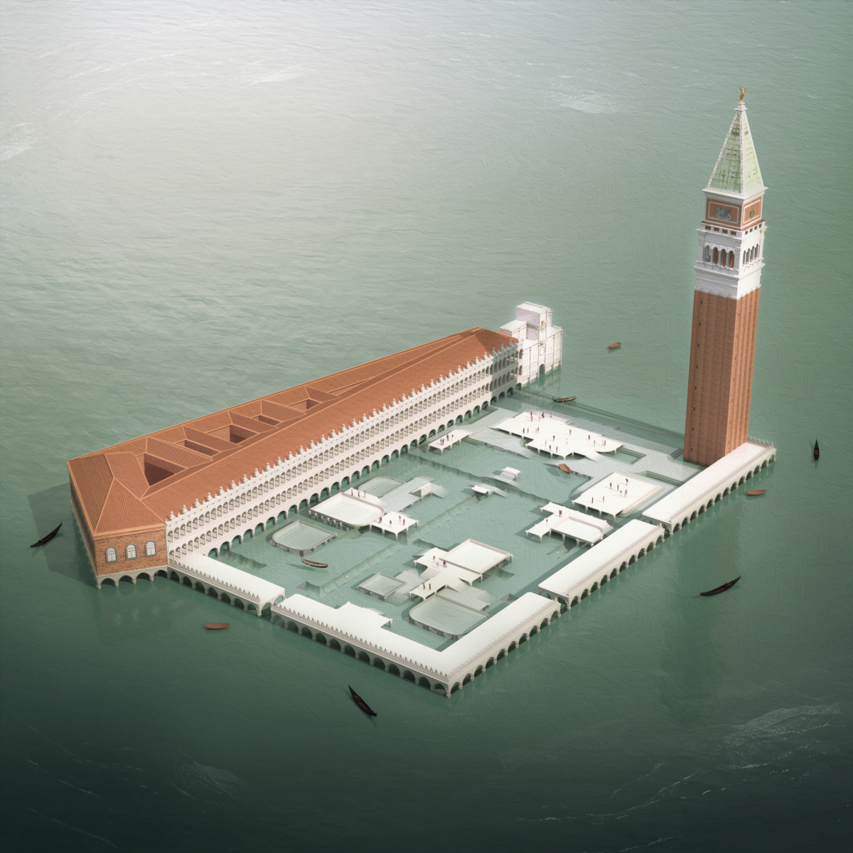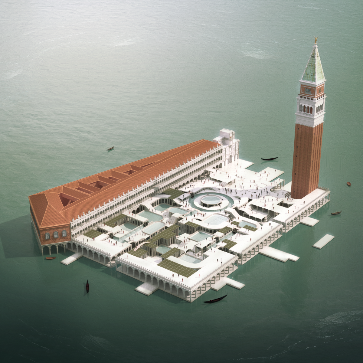 Le projet résulte donc en une agglomération d’architecture vénitienne métamorphosée donnant naissance à une nouvelle Piazza San Marco par sa reconstitution autour de certains éléments architecturaux tirés de sa vie qui sont assemblés pour proposer une manière d’habiter la Venise de demain.