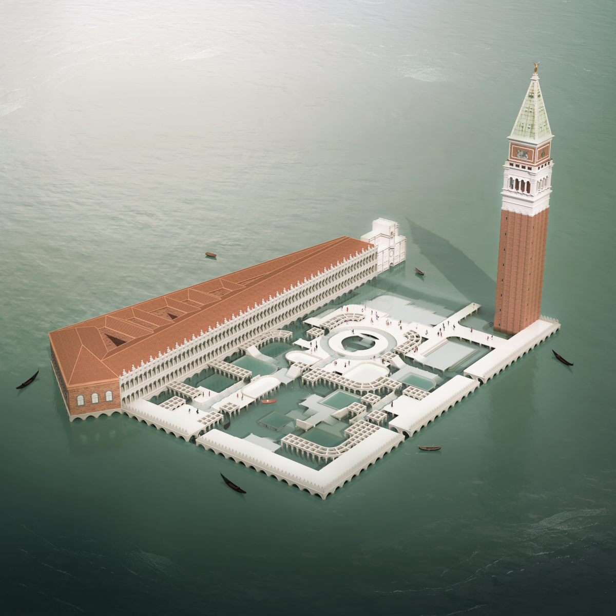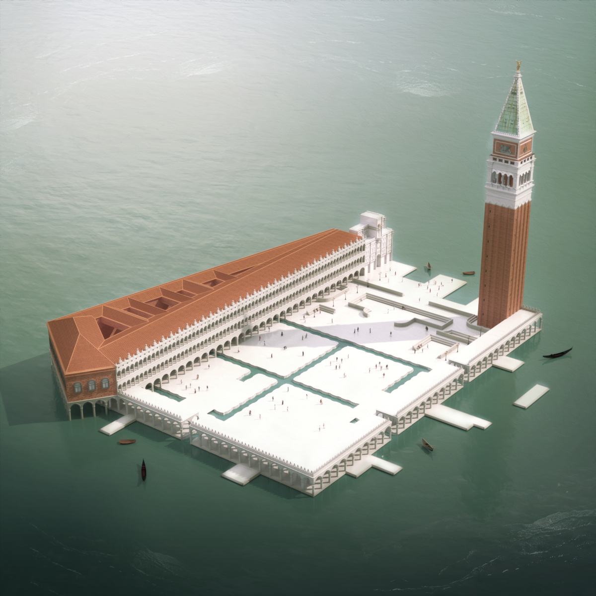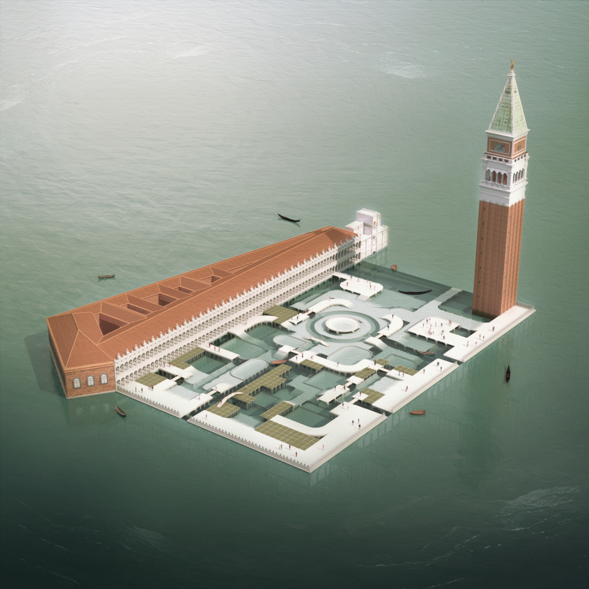 Le projet résulte donc en une agglomération d’architecture vénitienne métamorphosée donnant naissance à une nouvelle Piazza San Marco par sa reconstitution autour de certains éléments architecturaux tirés de sa vie qui sont assemblés pour proposer une manière d’habiter la Venise de demain.