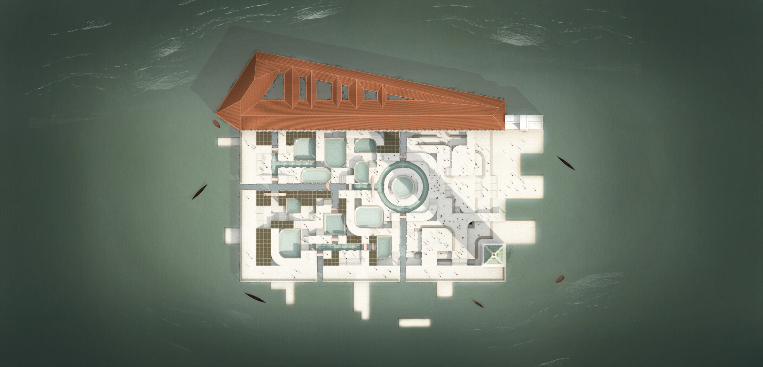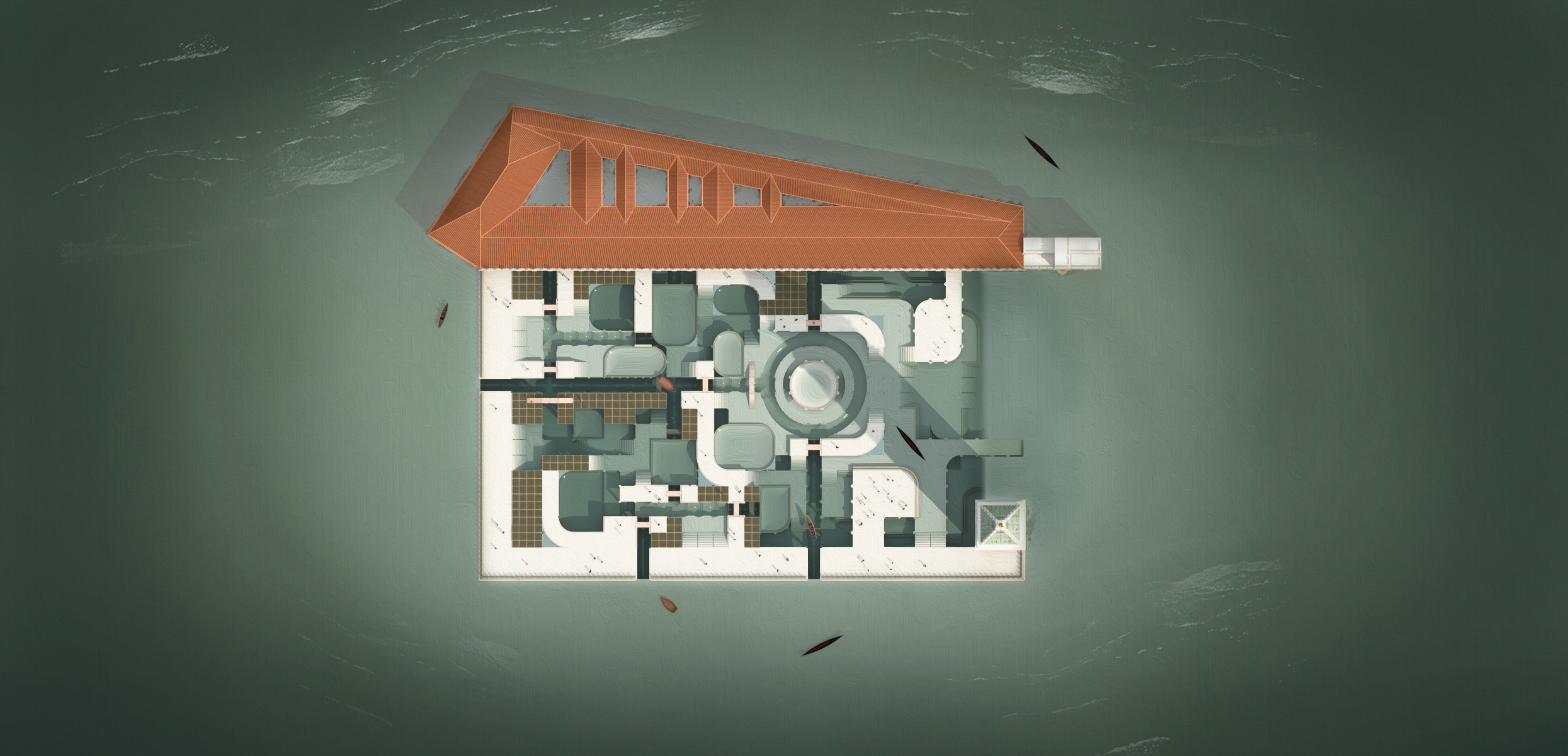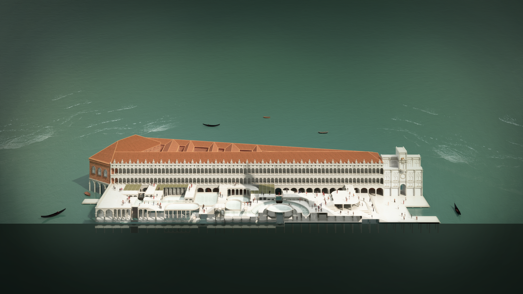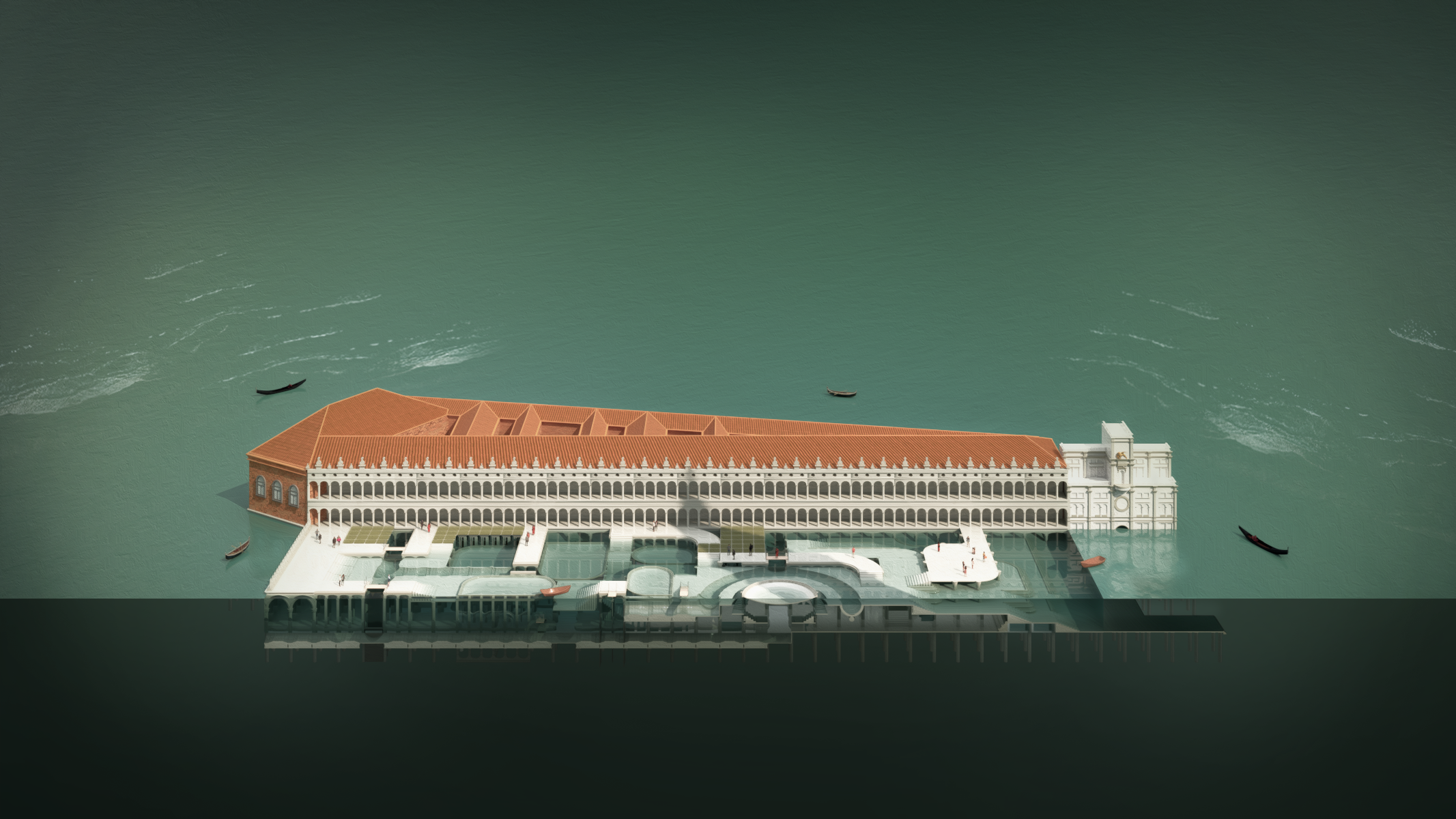Le projet résulte donc en une agglomération d’architecture vénitienne métamorphosée donnant naissance à une nouvelle Piazza San Marco par sa reconstitution autour de certains éléments architecturaux tirés de sa vie qui sont assemblés pour proposer une manière d’habiter la Venise de demain.