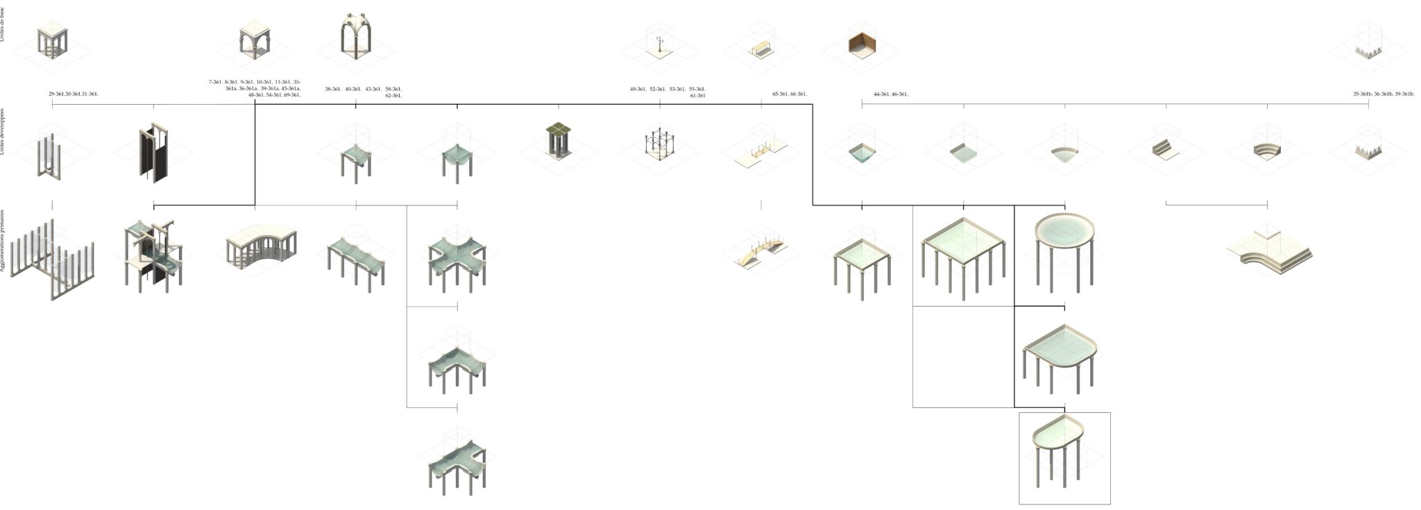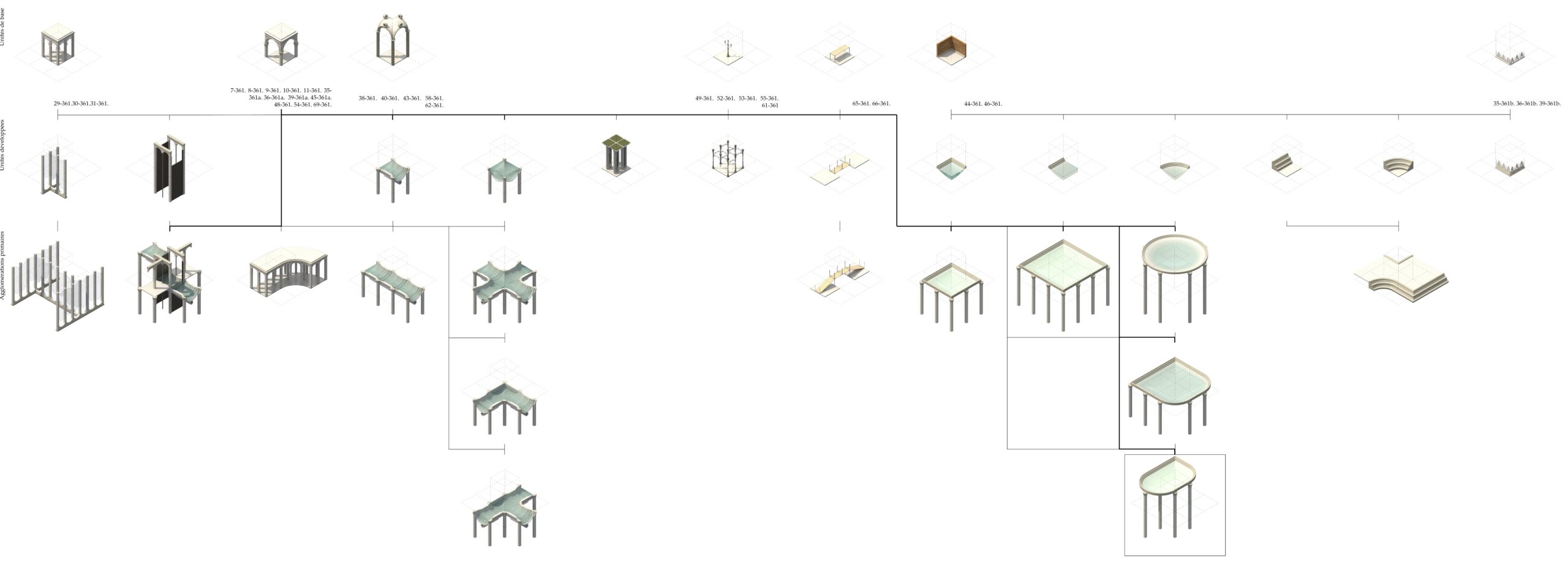 Le projet d’architecture qui vous est présenté, reprend le concept de métamorphose du philosophe Emanuele Coccia qu’il articule comme étant « la dissémination d’une vie dans les mondes et dans les formes [reliée] dans un cadre unitaire »1. Ces mondes et ces formes, l’espace les tire de son existence, de sa vie. Le projet s’amorce donc par un recensement d’éléments caractérisant la Piazza San Marco, premier endroit inondé lors des acque alte, afin d’y retracer les formes et les mondes qu’elle a pu incarner au fil de sa vie. À partir de ceux-ci, la métamorphose de la piazza suggérée par le projet se déploie.
